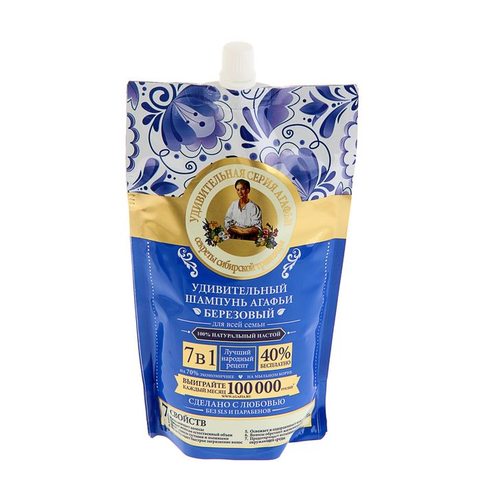 Шампунь для волос Удивительная Серия Агафьи «Березовый», 7 свойств, дой пак, 500 мл